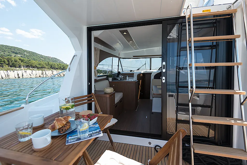 Bimini, Cockpit cushions, Dinghy, Electric winches, Teak deck, Air condition, Generator