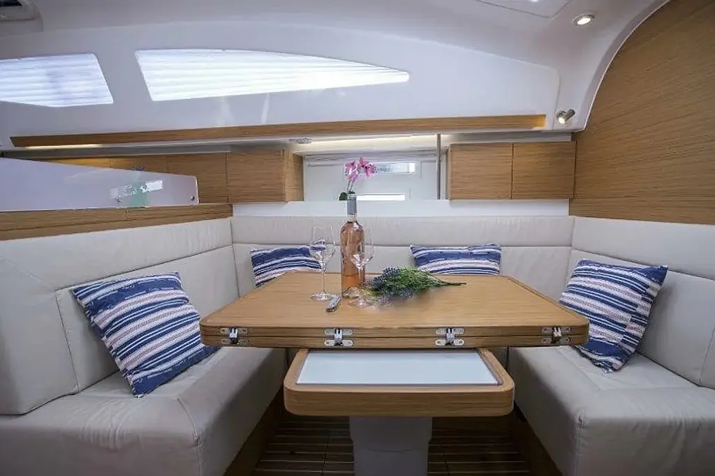 Swimming platform, Bimini, Cockpit cushions, Cockpit speakers, Dinghy, Refrigerator, Heating, Holding tank, Sprayhood, Teak Cockpit, Wi-Fi & Internet
