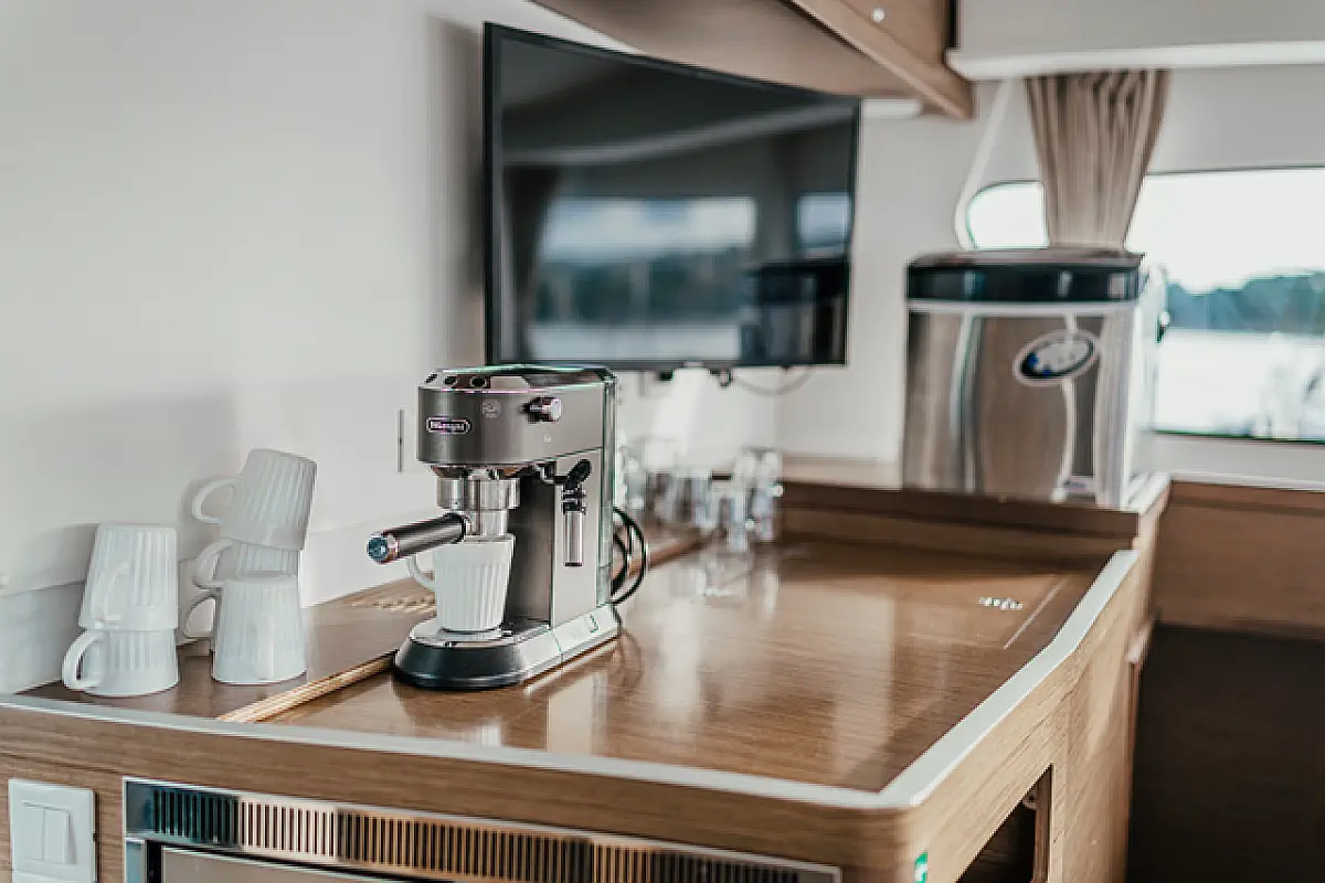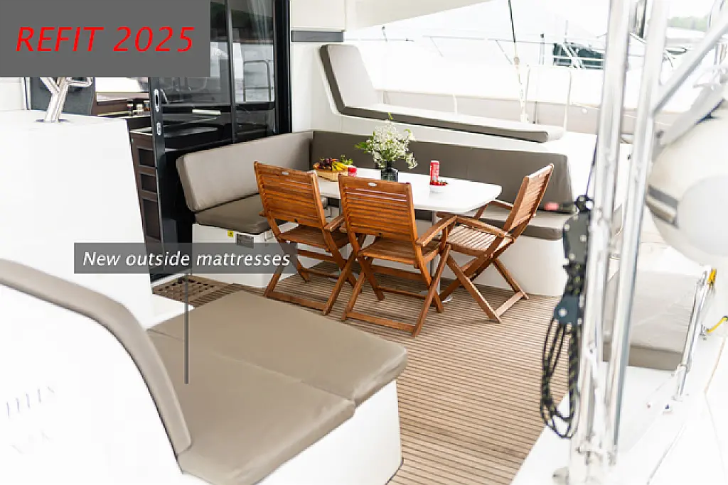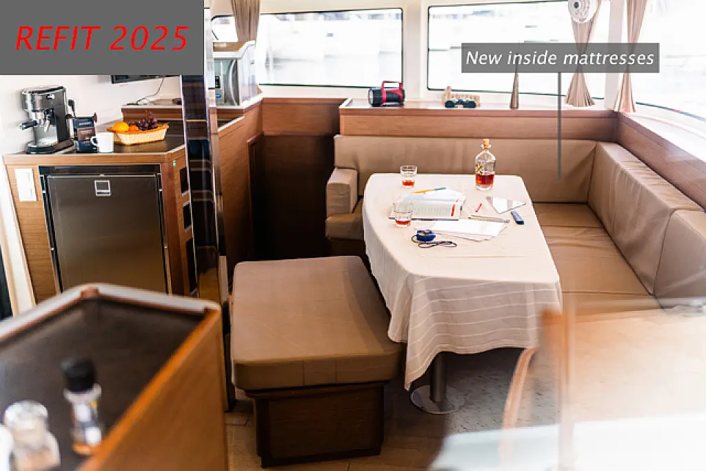 Air condition, Coffee maker, Cockpit cushions, Dinghy, Electric winches, Electric toilet, Ice maker, Holding tank, Inverter, Bimini, Solar Panels, Sprayhood, Teak Cockpit, Heating