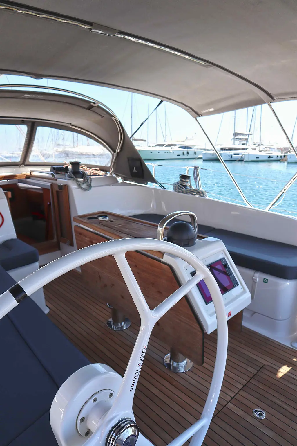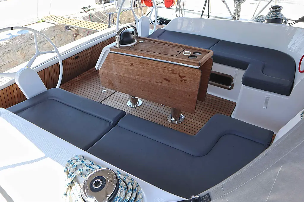 Coussins de cockpit, Panneaux solaires, Bimini, Annexe, Capote de roof, Réfrigérateur, Enceinte dans le cokpit