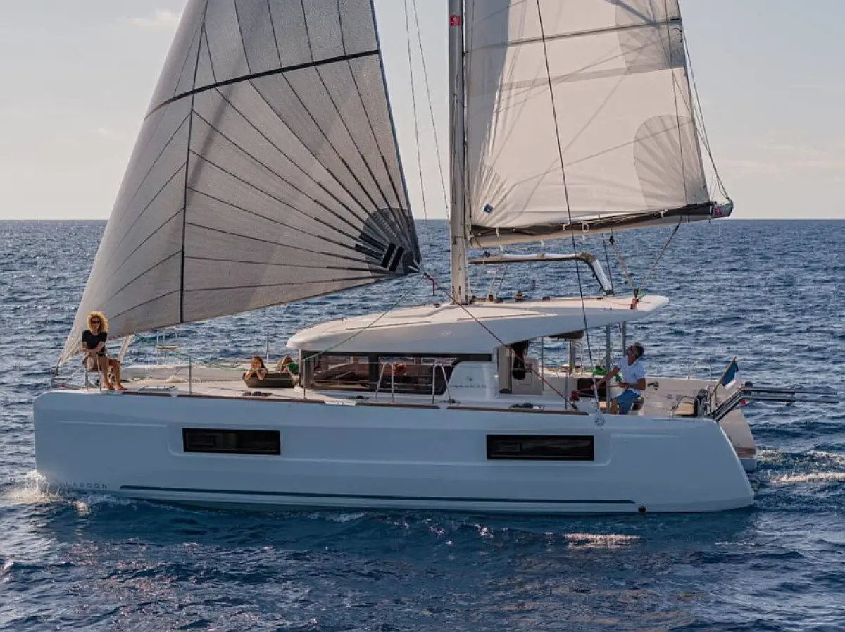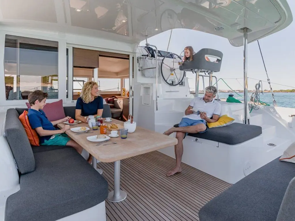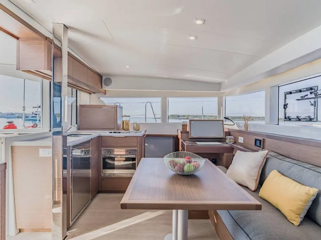Climatisation, Générateur, Dissalateur, Bimini, Coussins de cockpit, Annexe, Winchs électriques, Réfrigérateur, Chauffage, Machine à glaçons, Moteur hors-bord, Capote de roof