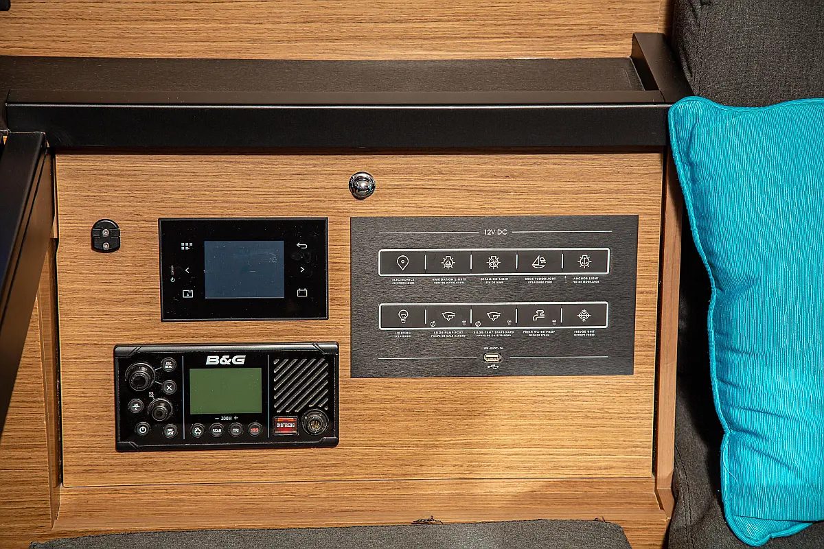 Dissalateur, Générateur, Inverter, Panneaux solaires, Climatisation, Machine à café, Toilette électrique, Annexe, Machine à glaçons, Réfrigérateur, Flybridge, Capote de roof