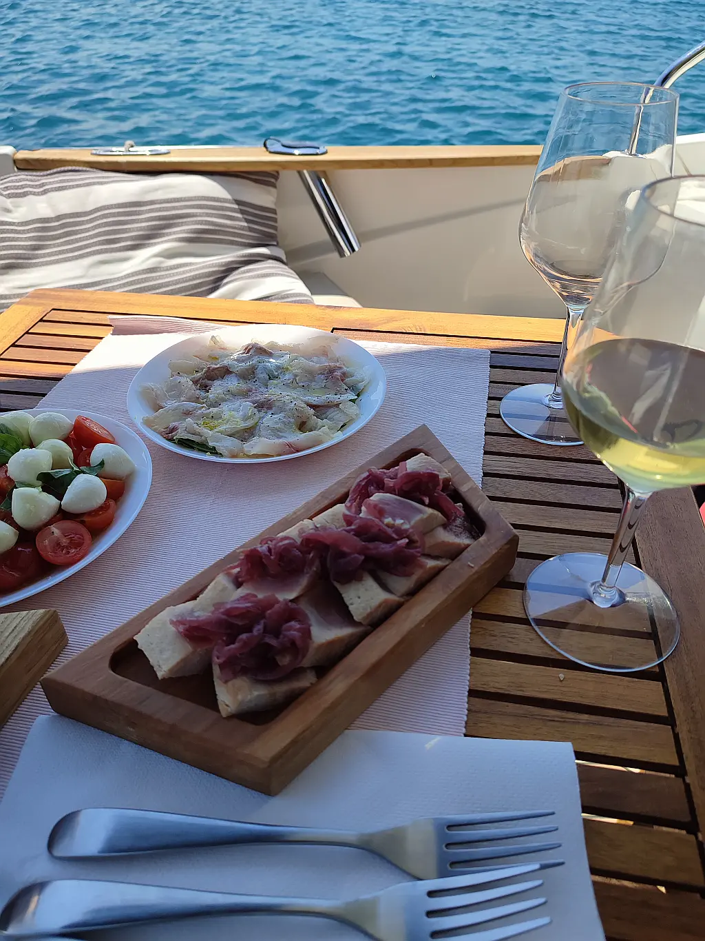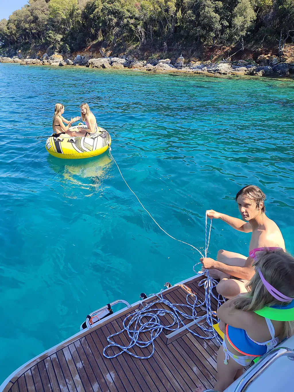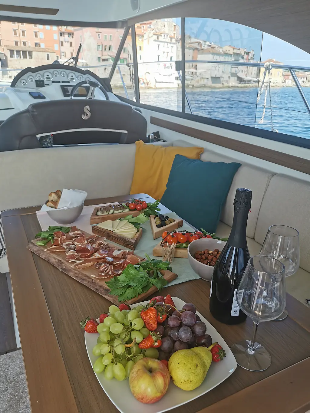 Bimini, Cockpit cushions, Dinghy, Electric winches, Teak deck, Air condition, Generator