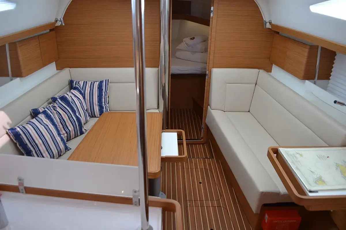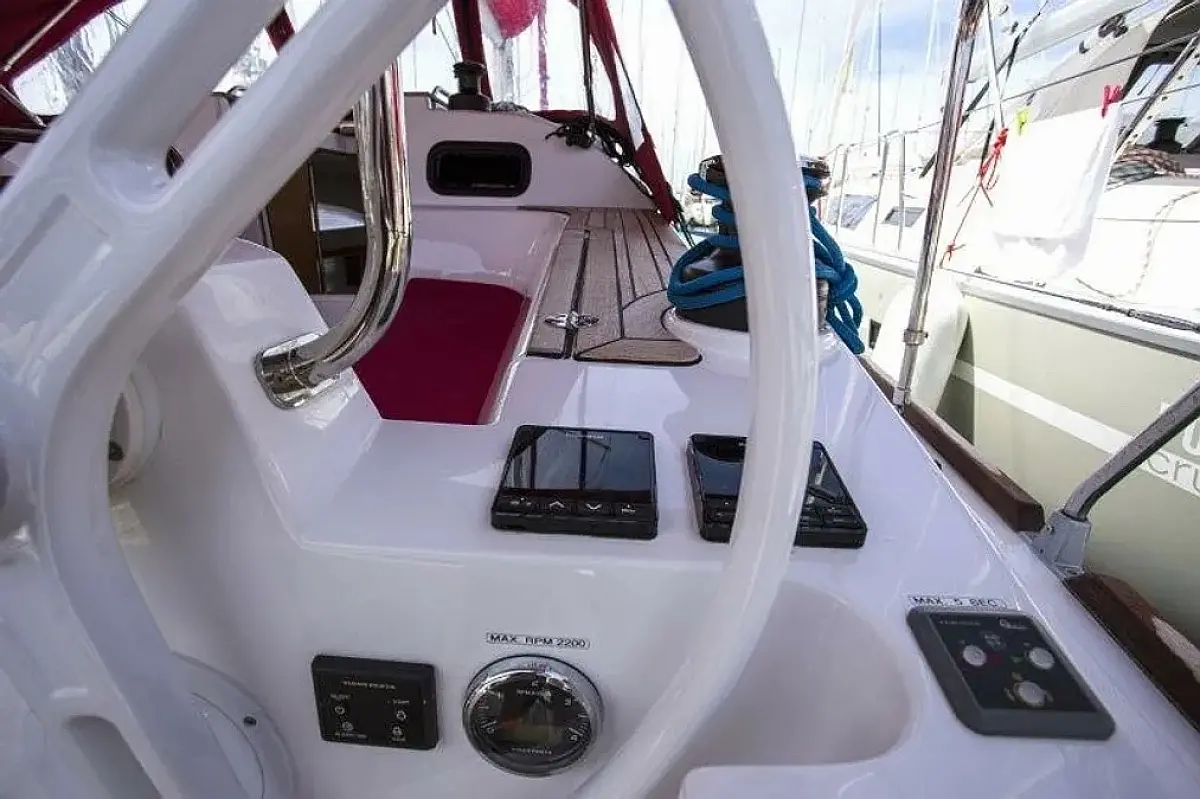 Swimming platform, Bimini, Cockpit cushions, Cockpit speakers, Dinghy, Refrigerator, Heating, Holding tank, Sprayhood, Teak Cockpit, Wi-Fi & Internet