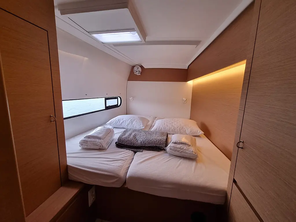 Air condition, Bimini, Cockpit cushions, Cockpit speakers, Dinghy, Refrigerator, Generator, Heating, Holding tank, Inverter, Outboard engine, Solar Panels, Teak Cockpit, Wi-Fi & Internet