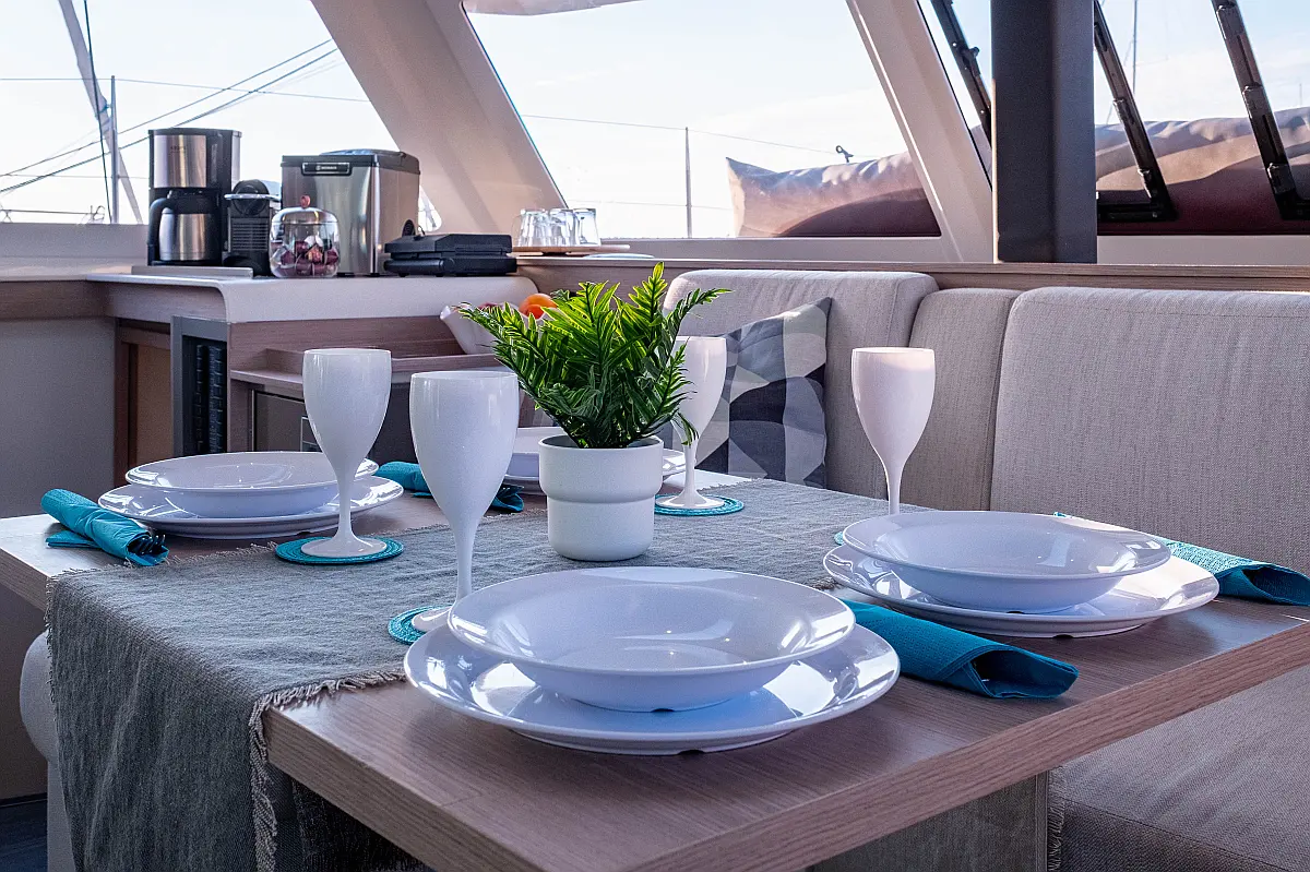 Refrigerator, Cockpit speakers, Electric winches, Dinghy, Air condition, Generator, Inverter, Electric toilet, Solar Panels, Water maker, Outboard engine, Cockpit cushions, Teak Cockpit